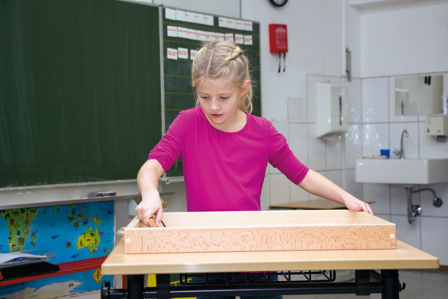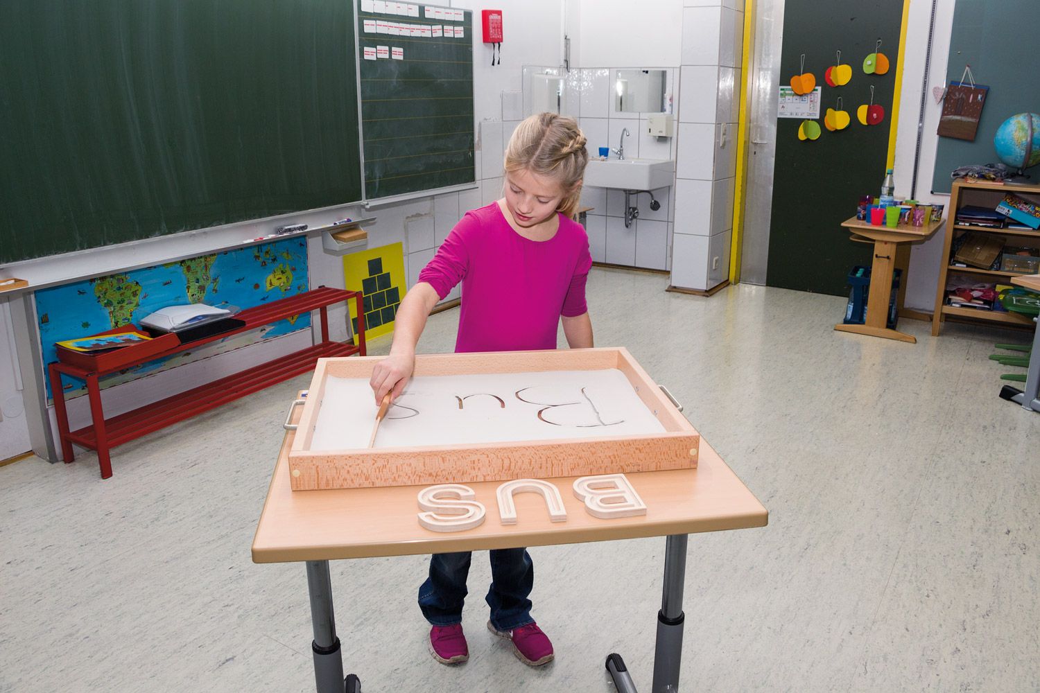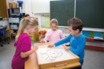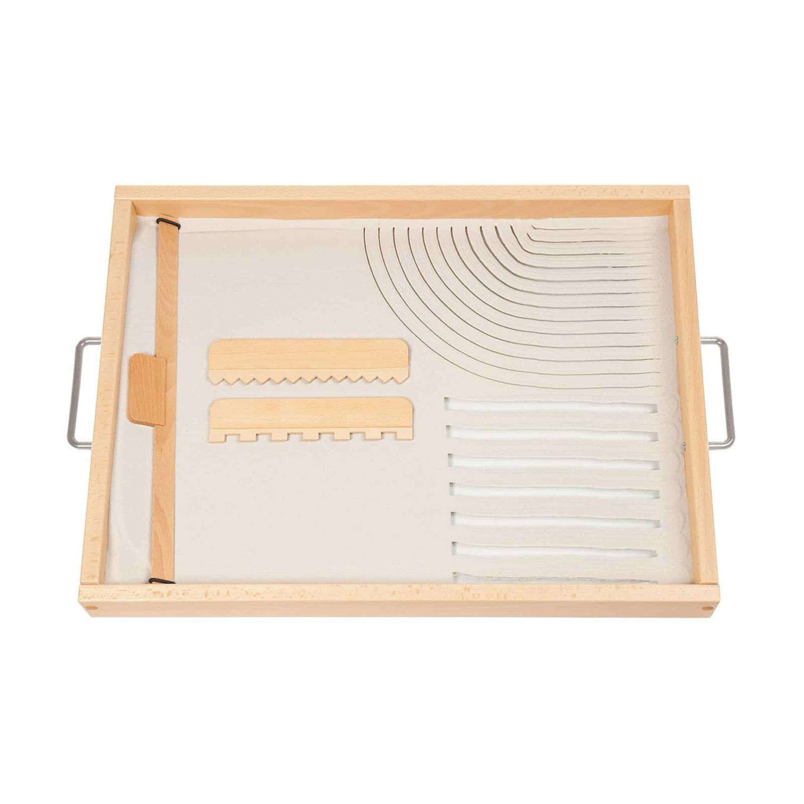 - Taktile Wahrnehmung fördern: Das Gefühl von feinem Sand, der zwischen den Fingern rieselt, ist nicht nur angenehm, sondern auch wichtig für die sensorische Entwicklung der Kinder. Sie können Löcher bohren, Linien und Figuren zeichnen oder kreative Muster legen, was die taktile Wahrnehmung sowie die Auge-Hand-Koordination entscheidend fördert.