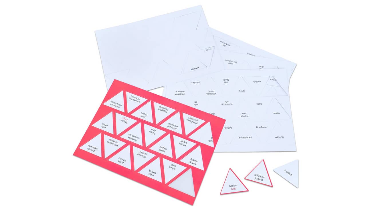 - 63 weitere Karten: Diese beinhalten Subjekte, Adjektive, Dativ- und Akkusativobjekte sowie Bestimmungen von Ort und Zeit.