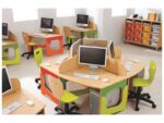 Eine elegante und robuste Produktreihe. Im Schalenstuhl mit Rollen können die Kinder hin und her brausen und jedoch stabil sitzen.