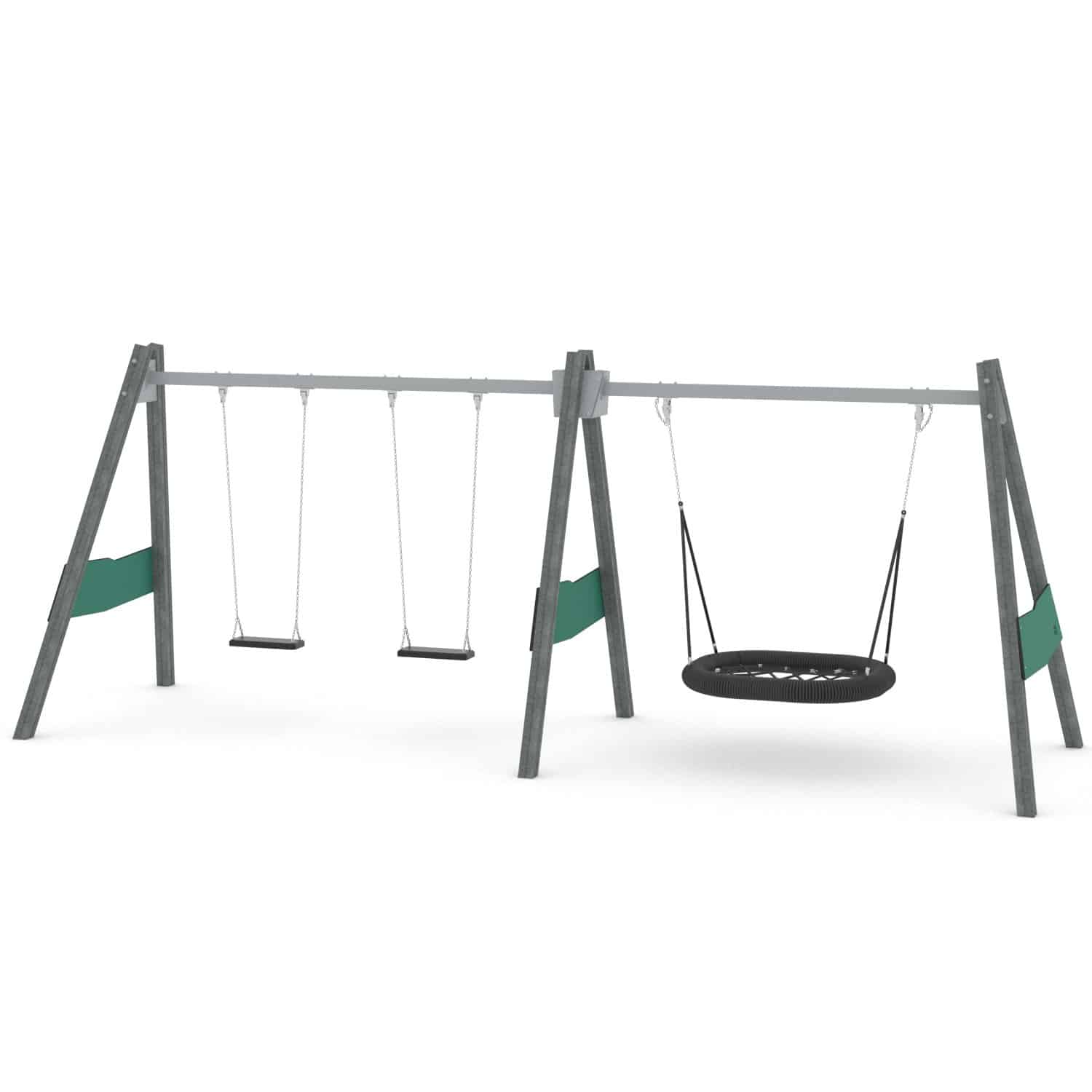 Schaukel mit 2 Schaukelsitzen und Vogelnest – RECYCLED RC1494 von Vinci Play – Spiel und Spaß für alle!