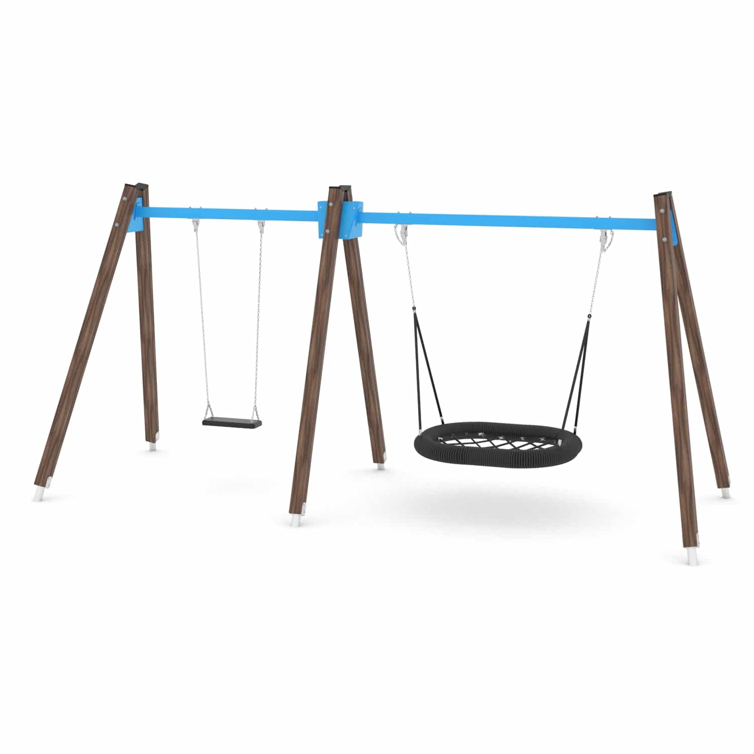 - Hochwertige Materialien für Sicherheit und Langlebigkeit: Hergestellt aus hochwertigem und stabilen Kiefernholz ohne Äste, sorgt die robuste Konstruktion (90 x 90 mm) für eine lange Lebensdauer. Der Metallanker aus feuerverzinktem Stahl schützt das Holz vor direktem Bodenkontakt, und die pulverbeschichteten Bauteile machen die Schaukel witterungsbeständig.