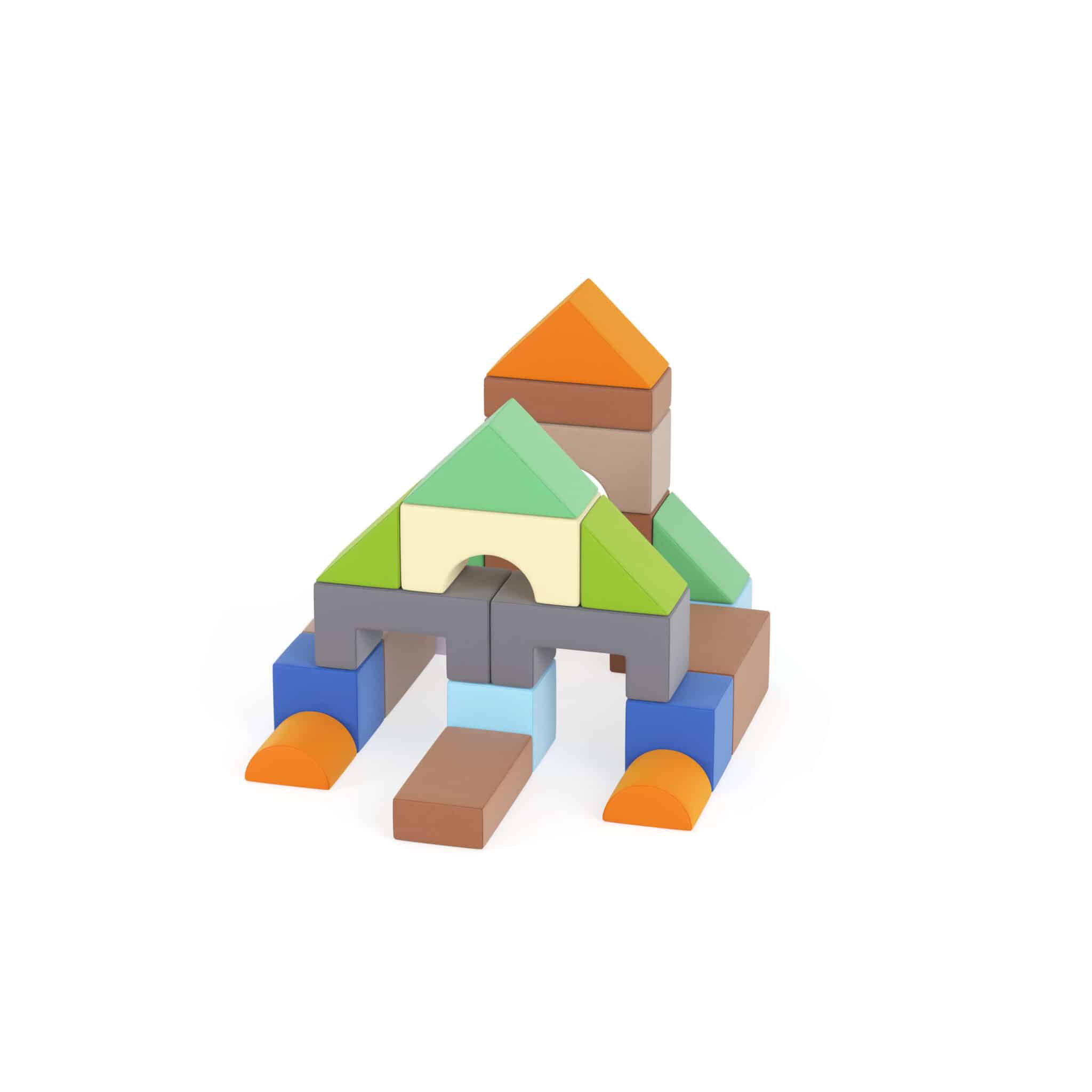 - Förderung der Kreativität: Durch die Kombination von 8 verschiedenen Formen (z.B. Halbzylinder, Keilsteine, Bögen) lernen Kinder, statische Zusammenhänge zu verstehen und räumlich zu denken.
