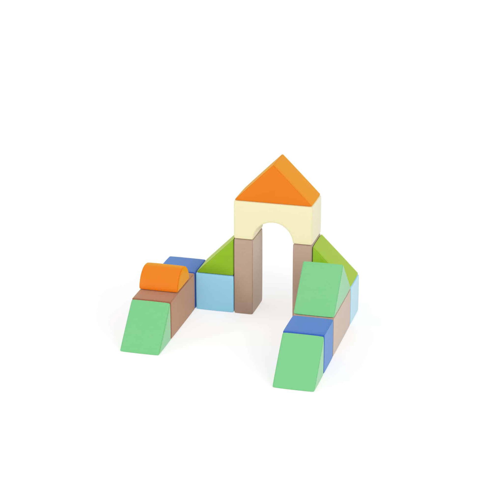 - Bausteine im Set: 2x Dachsteine, 1x Bogenstein, 2x lange Säulen, 4x große Quader, 2x kleine Quader, 4x Keilsteine/Rampen, 1x Halbzylinder