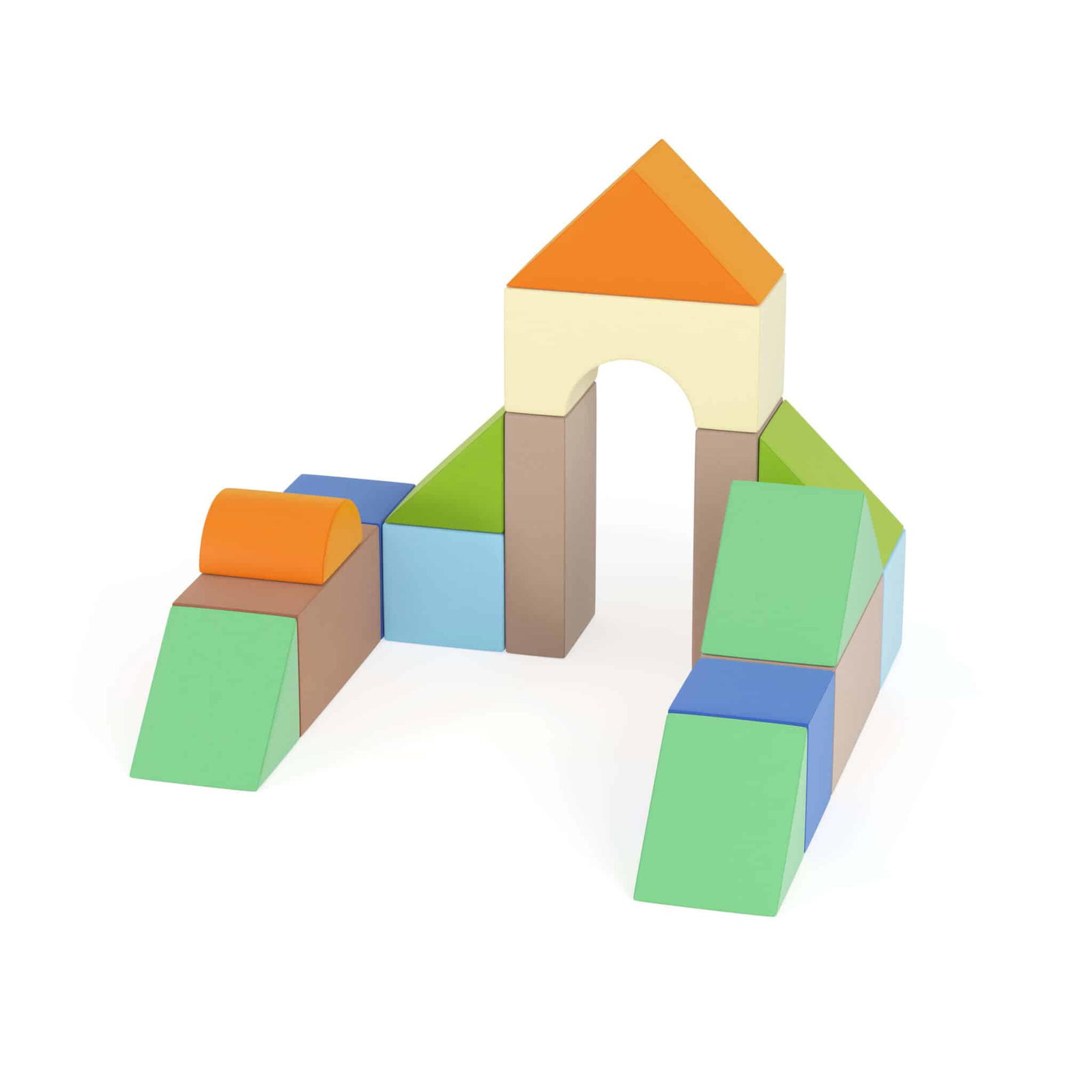 Ein Abenteuerspielplatz für den ganzen Körper.- Ganzheitliches Bewegungstraining: Kinder können über die Rampen klettern, auf den Quadern balancieren, durch den Torbogen krabbeln oder die leichten Bausteine heben und transportieren. Das schult Gleichgewicht, Koordination und Kraft.