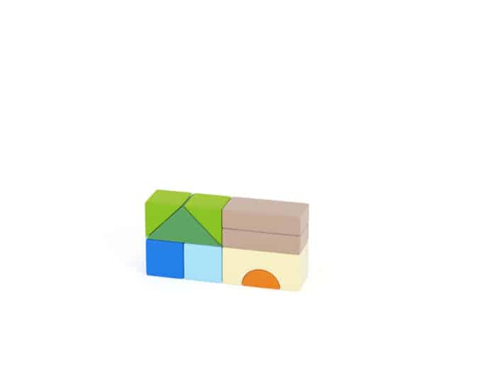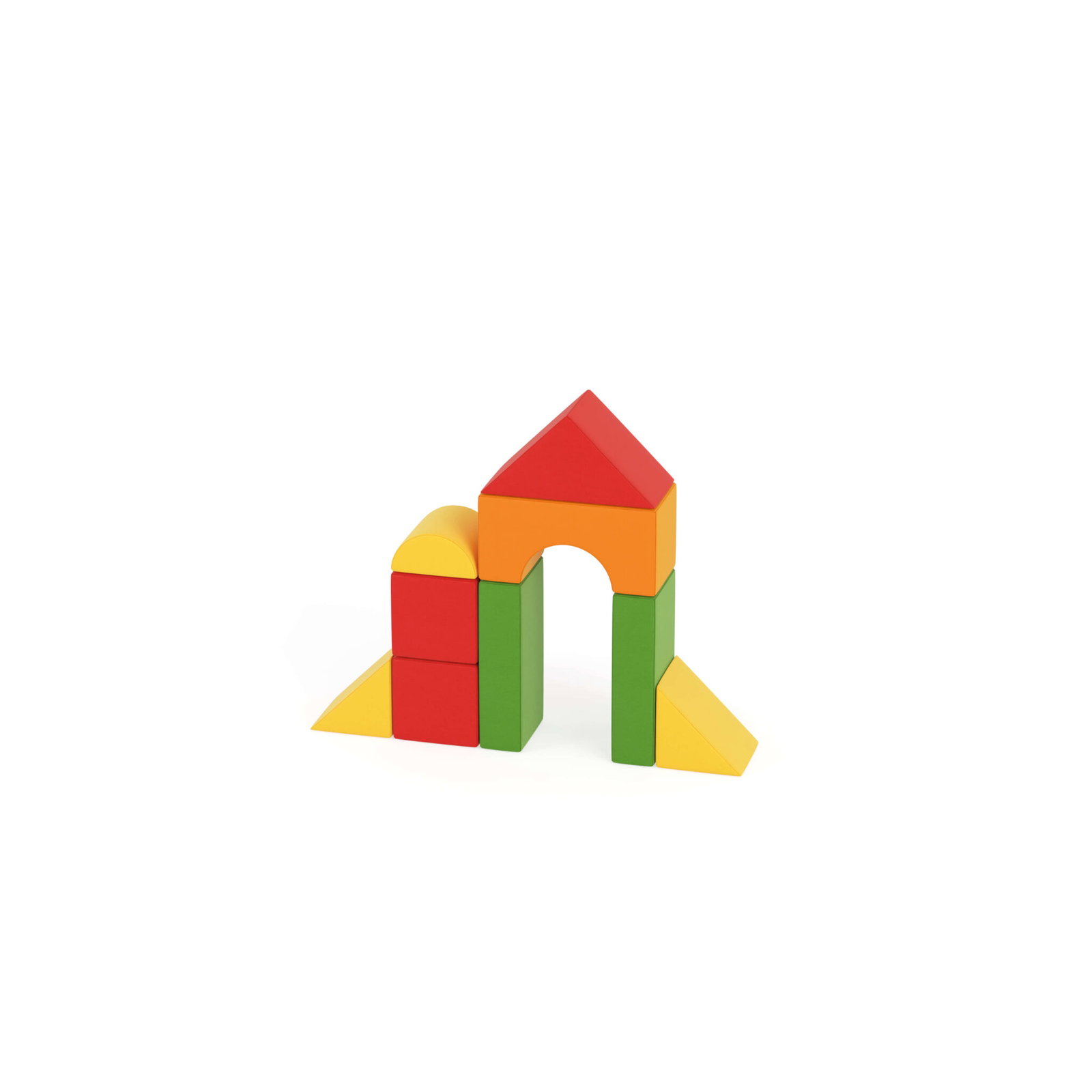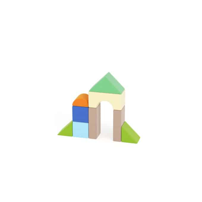 - Bausteine im Set: 1x Dachstein, 1x Bogenstein, 2x Säulen, 2x große Quader, 1x Halbzylinder, 2x Keilsteine/Rampen, 1x kleiner Quader