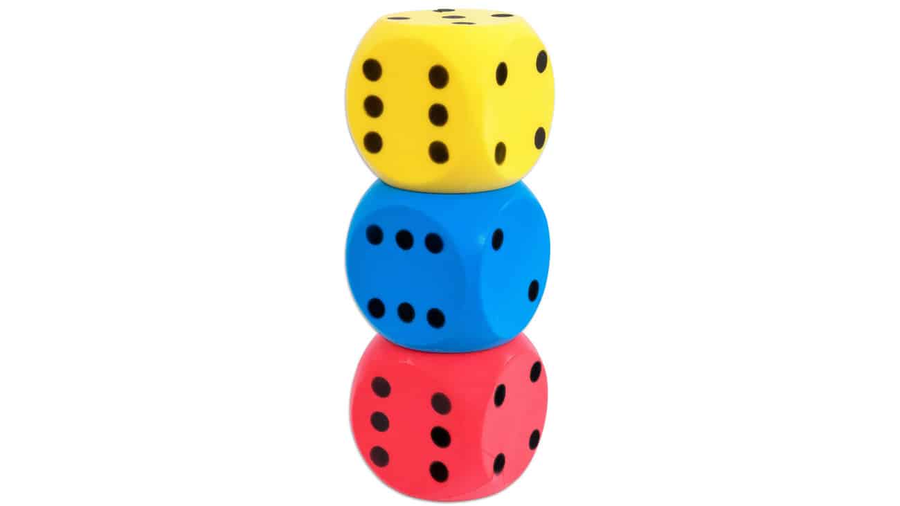 Mit ihrem fröhlichen Design in Blau, Gelb und Rot ziehen die Würfel die Aufmerksamkeit der Kinder auf sich und motivieren sie, aktiv zu werden und zu spielen.