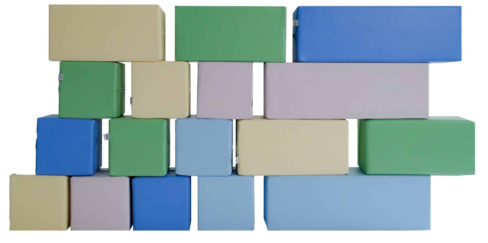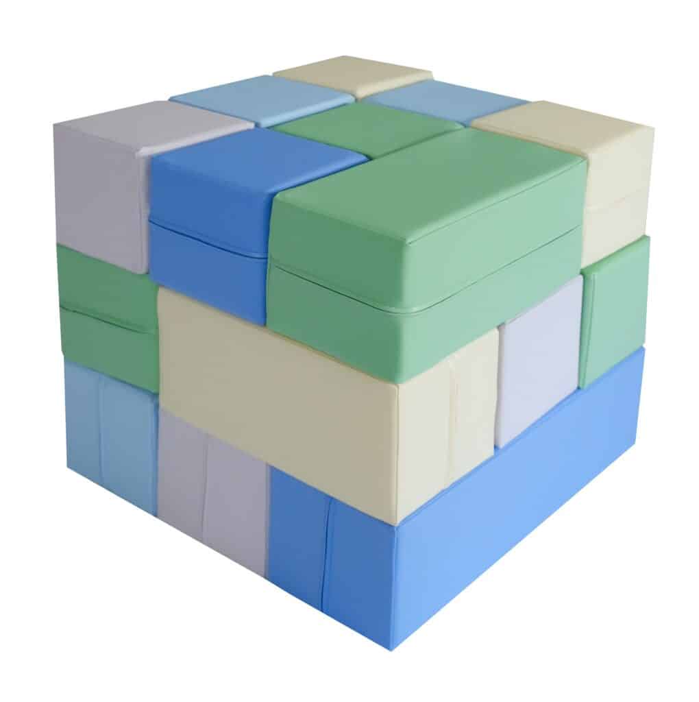 Spielelement, Möbelstück und Turngerät in einem.- Flexible Sitzgelegenheiten: Die Würfel dienen als mobile, kindgerechte Hocker, die sich schnell zu einer Sitzgruppe formieren lassen.