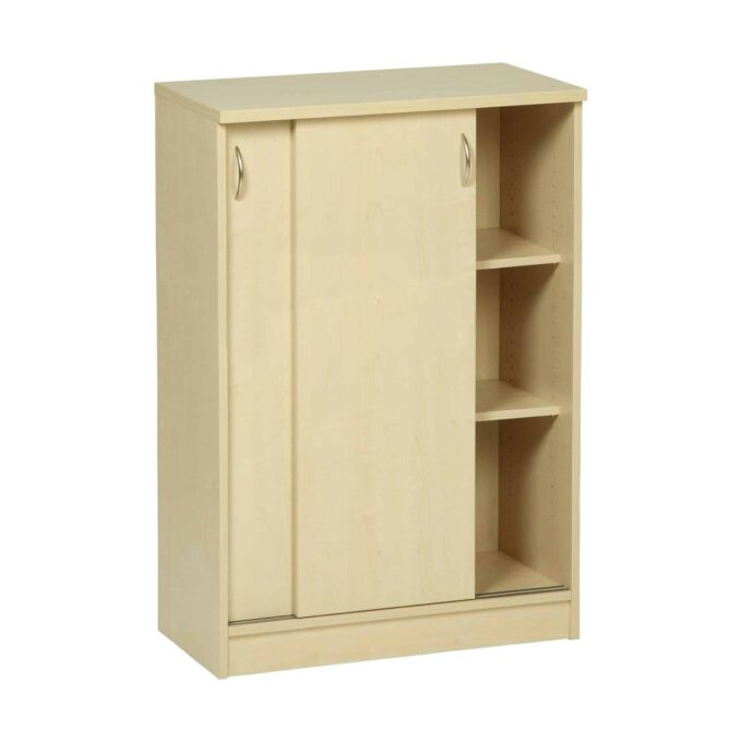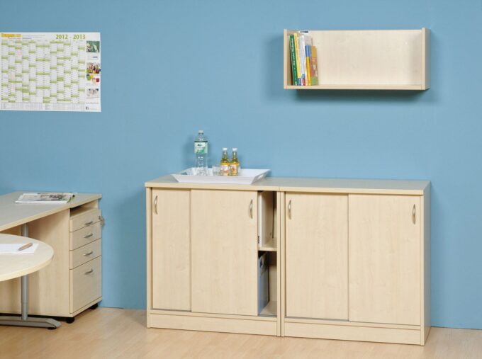Der Schiebetürenschrank von Dusyma aus dem hochwertigen Silvio-Programm vereint Funktionalität mit einer wohnlichen, ansprechenden Optik, die eine angenehme Atmosphäre in Büros, Personalräumen und Empfangsbereichen schafft. Mit seinem klaren, modernen Design in Ahornoptik, ist dieser Schrank die perfekte Lösung für alle, die praktischen Stauraum suchen und gleichzeitig auf stilvolle Einrichtung Wert legen. Dank seiner leichtgängigen Schiebetüren und der verstellbaren Fachböden bietet er eine flexible Nutzung, die Ordnung und Übersichtlichkeit gewährleistet.