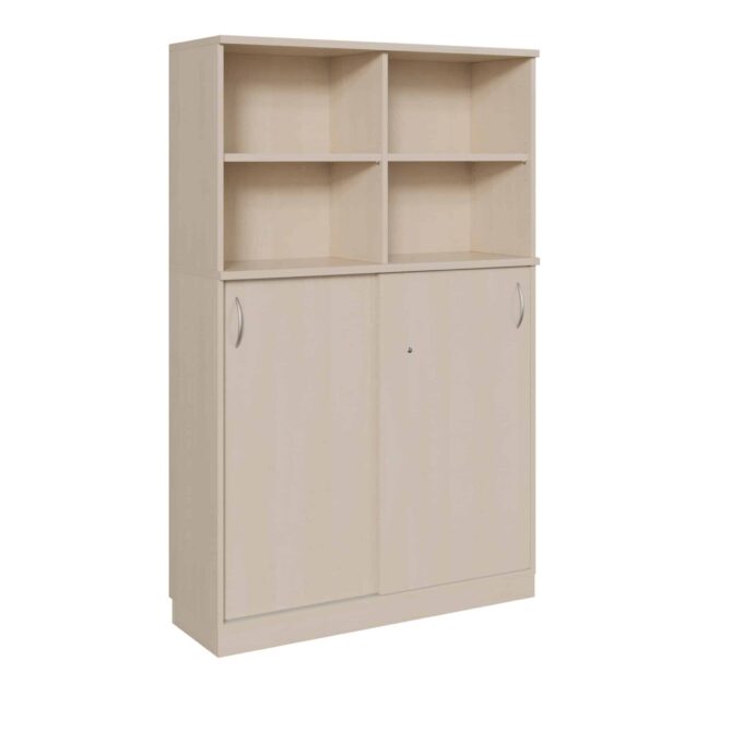 - Ausführung: Oberer Teil als offenes Regal, unterer Teil mit abschließbaren Schiebetüren