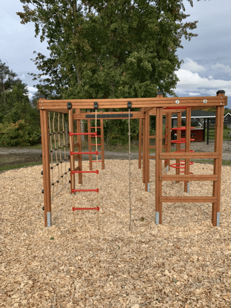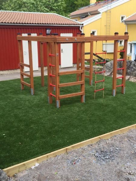 - Ein Abenteuer aus Leitern und Seilen: Das Klettergerüst bietet eine spannende Kombination aus Holzleitern, Metallleitern, Strickleitern und Hängeleitern, um verschiedenste Klettererlebnisse zu schaffen.
