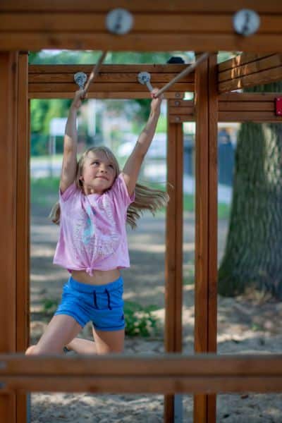 - Motorische Fähigkeiten trainieren: Die unterschiedlichen Kletterelemente unterstützen die Koordination, Beweglichkeit und Kraft der Kinder.