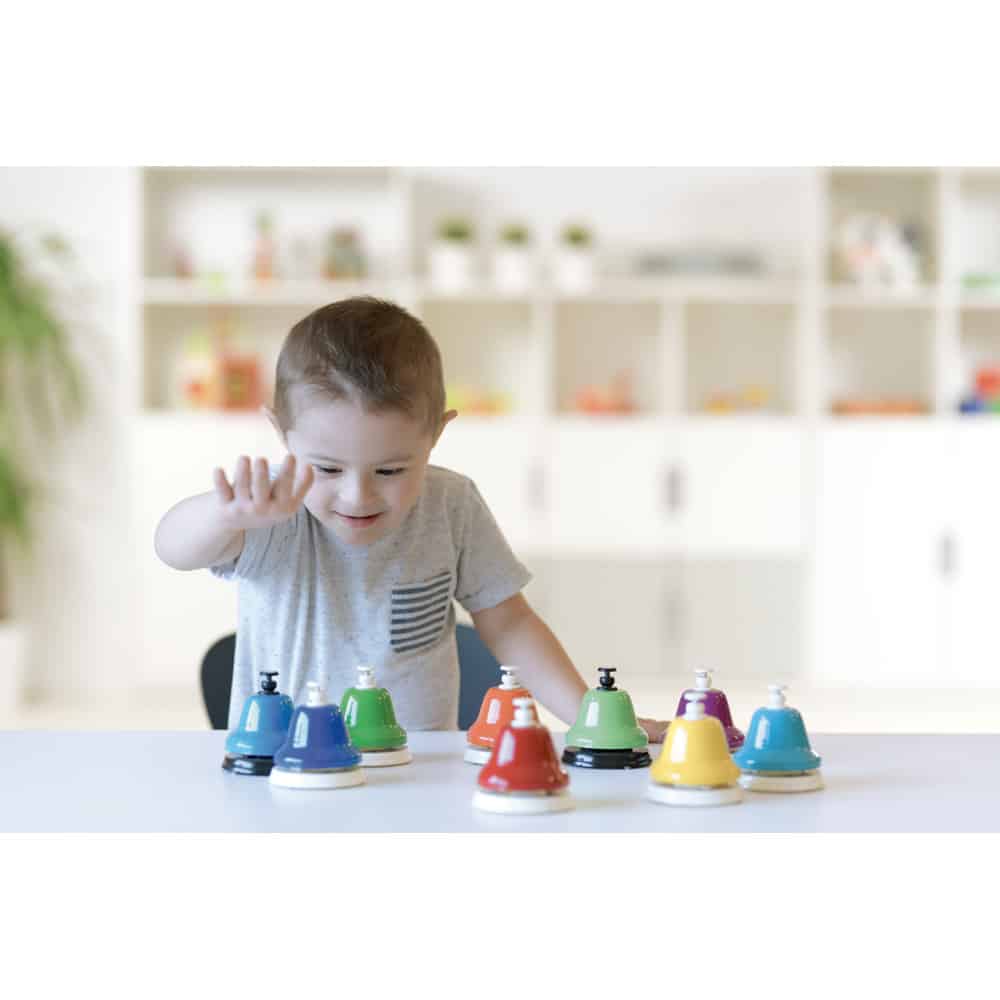Das Set besteht aus 10 Schlagglöckchen aus stabilem Metall, die langlebig und robust sind. Diese Instrumente sind ideal für den Einsatz in Kindergärten, Schulen oder zu Hause und fördern die musikalische Entwicklung, das Rhythmusgefühl und die Kreativität Ihrer Kinder.