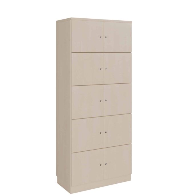 - Aufteilung: 10 separate, einzeln verschließbare Fächer auf 5 Ebenen