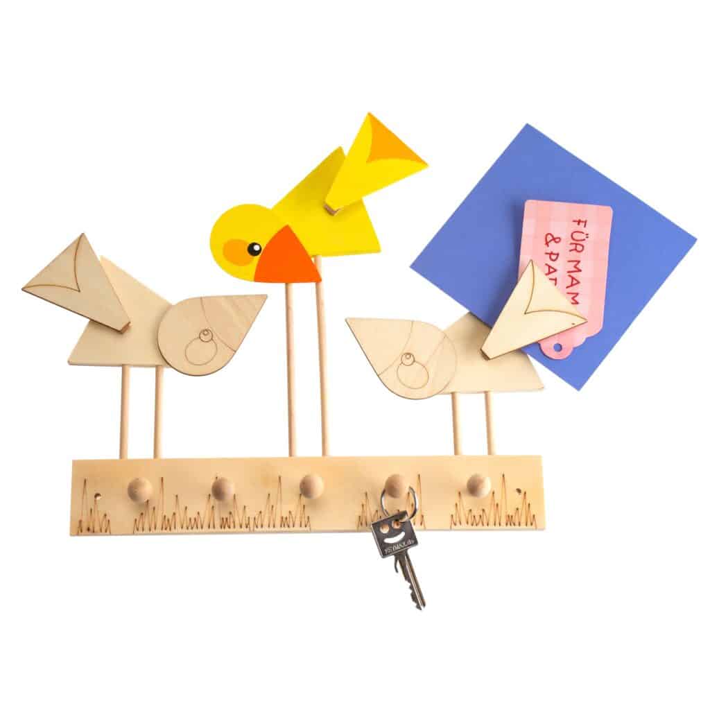 Das Schlüsselbrett „Piepser“ bringt nicht nur Ordnung in Ihren Alltag, sondern auch eine Portion Charme und Persönlichkeit an Ihre Wand. Dieses liebevoll gestaltete Organisationshilfe aus hochwertigem Sperrholz verwandelt das alltägliche Suchen nach Schlüsseln in ein entspanntes Ritual und sorgt dafür, dass jeder Schlüssel seinen festen Platz hat. Mit seinen großzügigen Abmessungen von 35 x 26 cm bietet es ausreichend Raum für die Schlüssel der ganzen Familie und wird dabei zum dekorativen Highlight in Flur, Küche oder Wohnbereich. Der Name „Piepser“ deutet auf das spielerische Design hin, das funktionale Ordnung mit einem Augenzwinkern verbindet und täglich für gute Laune sorgt.