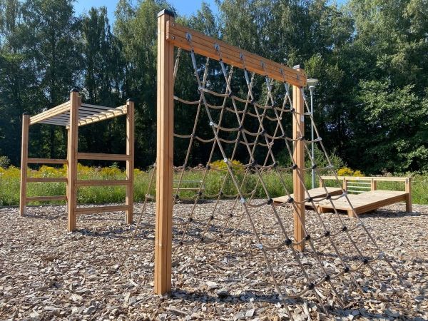 - Hochwertige Materialien: Das Netz besteht aus wetterfester Lärche und strapazierfähigen Seilen aus Polypropylen, die verstärkt sind, um auch intensiver Nutzung standzuhalten.