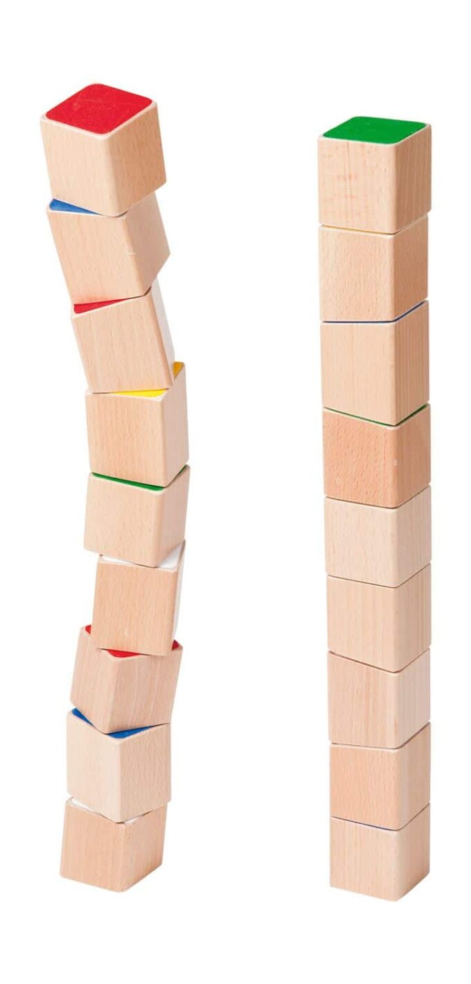 - Haptische Erfahrungen: Die beflockten Oberflächen sorgen für ein angenehmes Hautgefühl und ermöglichen verschiedene haptische Erfahrungen. Durch die spezielle Beschaffenheit der Flächen haften die Steine besser aufeinander, was das Stapeln erleichtert und das Spielvergnügen erhöht.