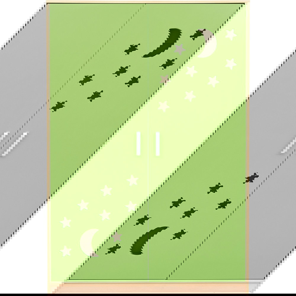 Dieser robuste Schrank ist speziell für die hohen Beanspruchungen im Kindergartenalltag konzipiert. Hinter den widerstandsfähigen, laminierten Türen finden bis zu zehn Stapelbetten ihren festen Platz. Ob in frischem Grün oder klassischem Weiß – die Fronten fügen sich harmonisch in jede Raumgestaltung ein. Besonders clever sind die motivdurchbrochenen Türen: Sie sehen nicht nur freundlich und kindgerecht aus, sondern fungieren als effektives Belüftungssystem. So bleibt das Bettzeug frisch, und der Raum ist im Handumdrehen aufgeräumt.