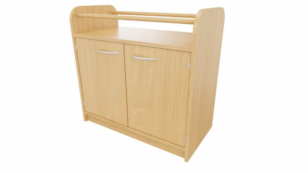 Dieser Schrank ist eine intelligente 2-in-1-Lösung, die speziell für die hohen Anforderungen in Betreuungseinrichtungen konzipiert wurde. Er fördert die Entwicklung der Kinder und erleichtert gleichzeitig die täglichen Abläufe.