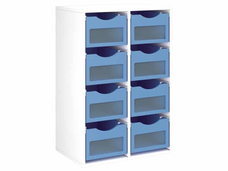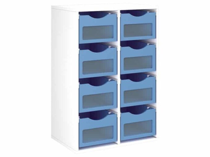 - Flexibles Design: Mit einer Höhe von 102 cm und einer Länge von 70,5 cm passt der Schrank in jeden Raum. Die transparente Fassade der Behälter ermöglicht es, den Inhalt auf einen Blick zu erkennen und erleichtert das Organisieren.