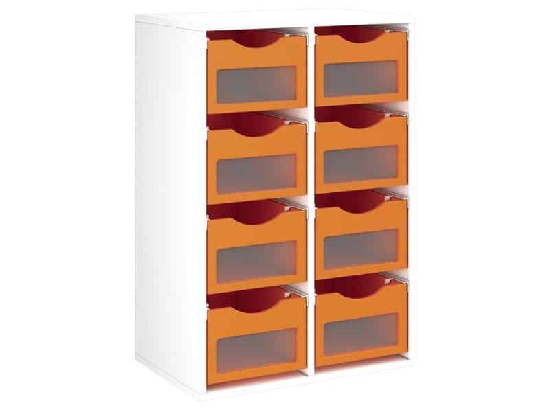 Schrank mit Melamimbeschichtung H: 102 cm – L: 70,5 cm mit 8 Holzbehältern auf Schienen – Ordnung mit Stil!
