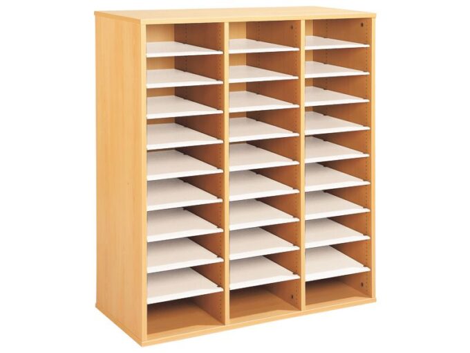 Schrank mit Melaminbeschichtung mit 27 Regalbretter – Höhe: 118 cm – Länge: 105 cm für KiTas & Kindergärten