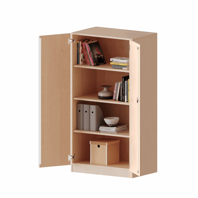 - Platzsparende 270°-Scharniere: Die robusten Türen sind mit speziellen 270°-Scharnieren ausgestattet. Sie lassen sich vollständig an die Seitenwände des Schranks anlegen und stehen so niemals im Weg – ein unschätzbarer Vorteil in belebten Büros, Klassenzimmern oder engen Fluren.