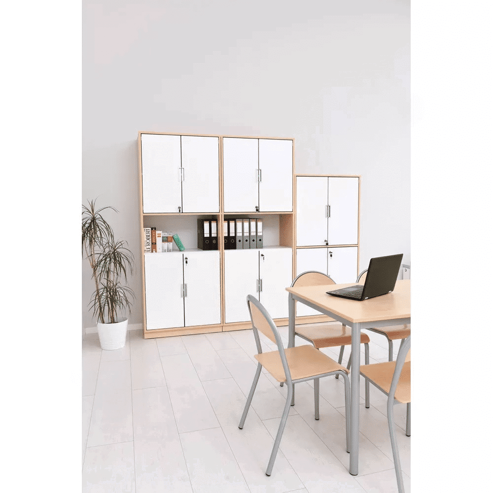 Der Schrank XL ohne Mittelwand der Quadro Kollektion überzeugt mit einem modernen Design und herausragender Funktionalität. Die robuste, laminierte Spanplatte ist in zwei stilvollen Varianten erhältlich: Ahorn-Dekor oder elegantem Weiß. Mit drei großzügigen Einlegeböden bietet der Schrank optimalen Stauraum für alles, was Sie ordentlich verstauen möchten.