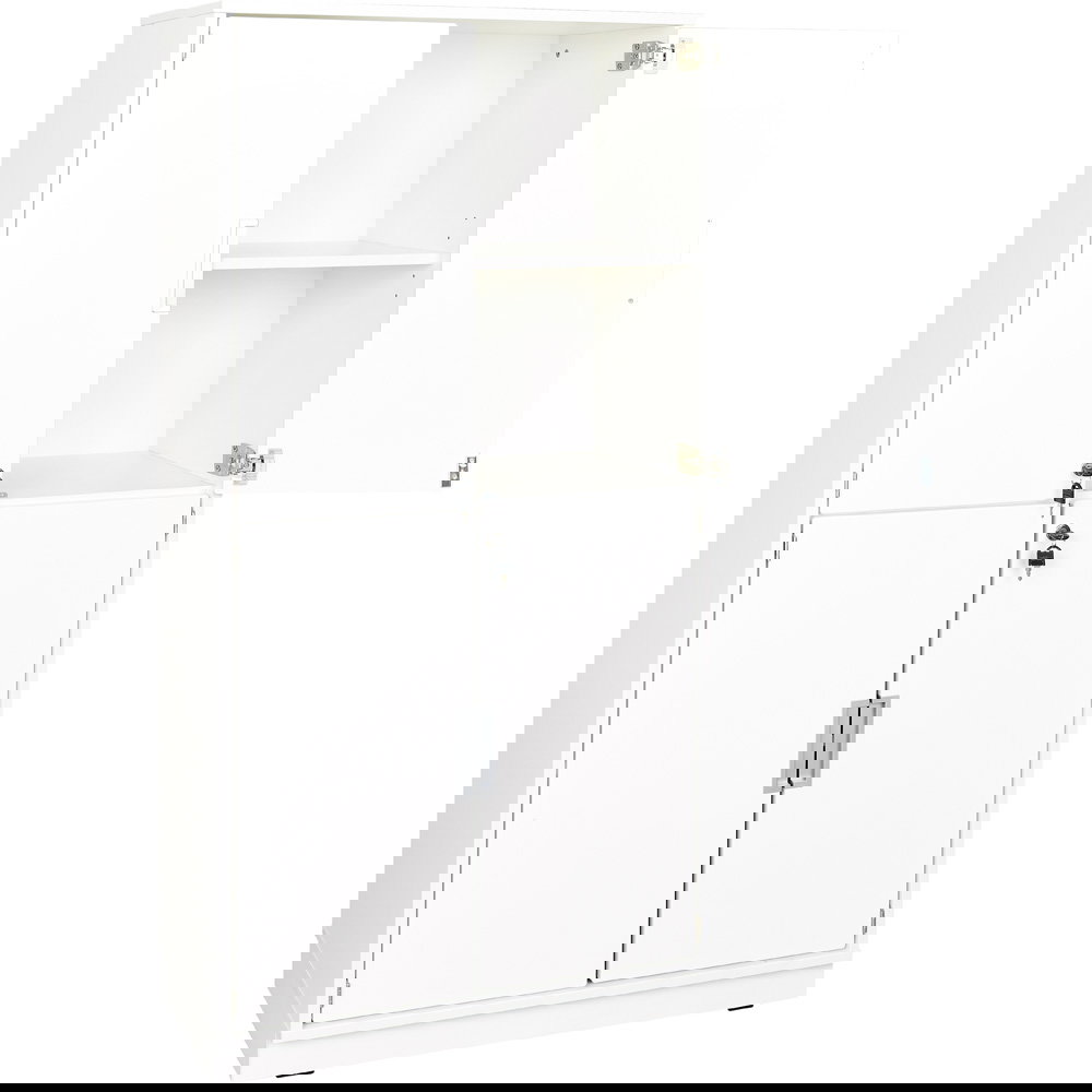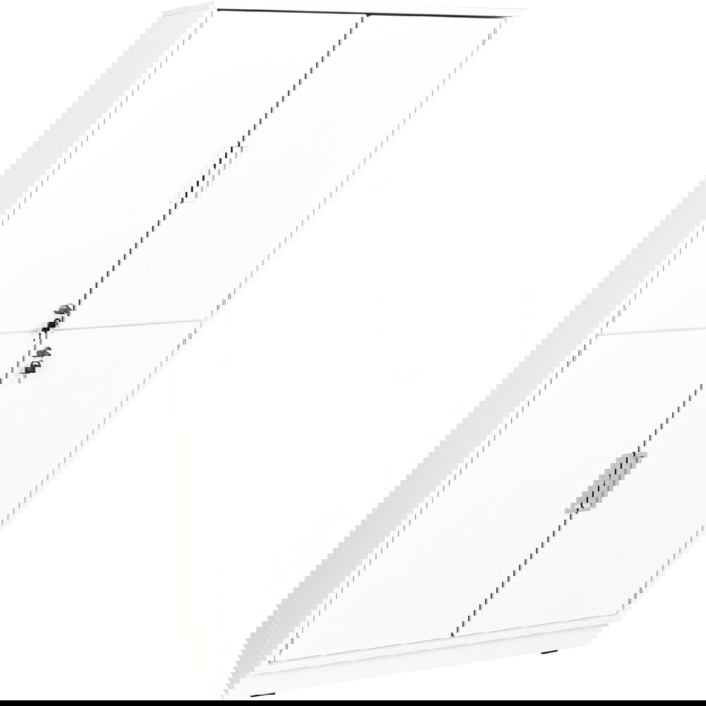Hinter den weißen, abschließbaren Türen schützen Sie vertrauliche Dokumente oder wertvolle Gegenstände zuverlässig vor unbefugtem Zugriff. Die Türen lassen sich um volle 180 Grad öffnen und liegen im geöffneten Zustand flach an den Außenseiten an. Dies verhindert Stolperfallen und gewährt Ihnen einen völlig freien, bequemen Zugriff auf den gesamten Schrankinhalt. - Hochwertige und widerstandsfähige Materialien
