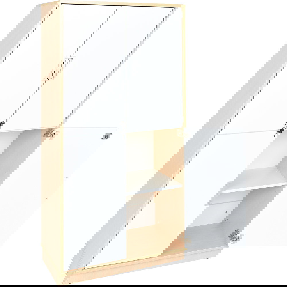 Mit einer kompakten Breite von 79,2 Zentimetern und einer Höhe von 161,6 Zentimetern fügt sich dieses Möbelstück harmonisch in Klassenzimmer, Kindergärten oder Büros ein. Das Besondere an diesem Modell: Der Verzicht auf eine feste Mittelwand schafft eine durchgehende, breite Ablagefläche im gesamten Innenraum. So bringen Sie auch sperrige Gegenstände mühelos unter und strukturieren Ihren Alltag deutlich leichter. Wir haben diesen Schrank entwickelt, um Ihnen eine anpassungsfähige, sichere und langlebige Lösung für Ihre Aufbewahrungswünsche zu liefern.