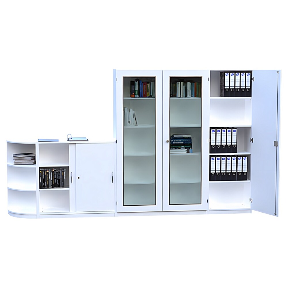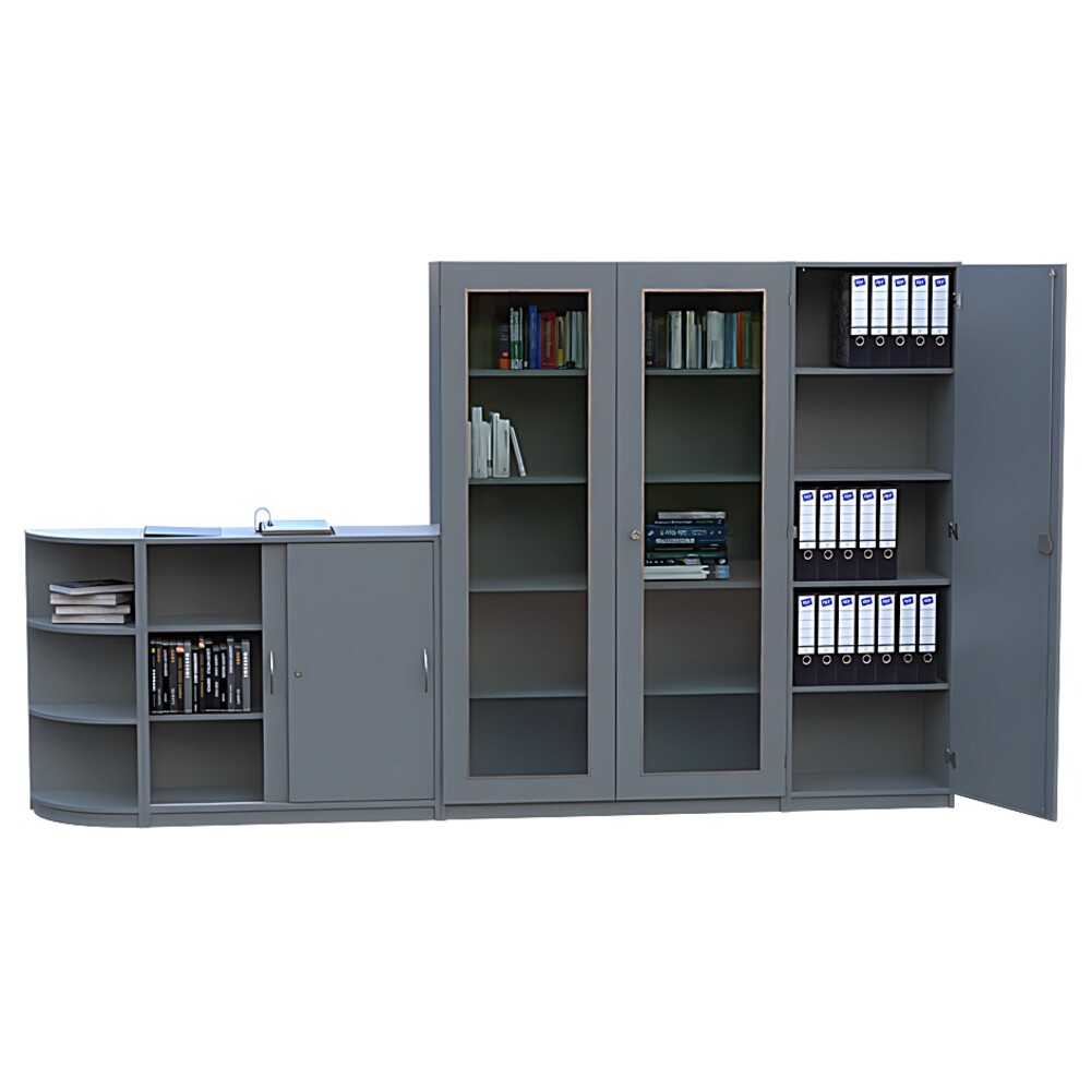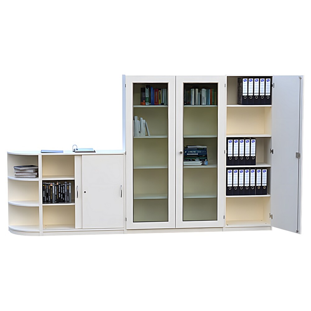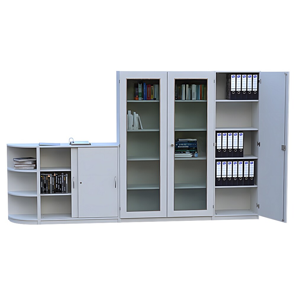 - Umfangreiches Platzangebot: Die clevere Kombination aus hohen und halbhohen Elementen nimmt all Ihre Arbeitsmaterialien mühelos auf und entlastet Ihre Schreibtische.