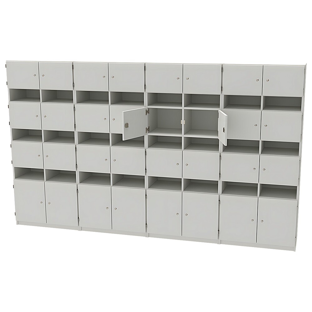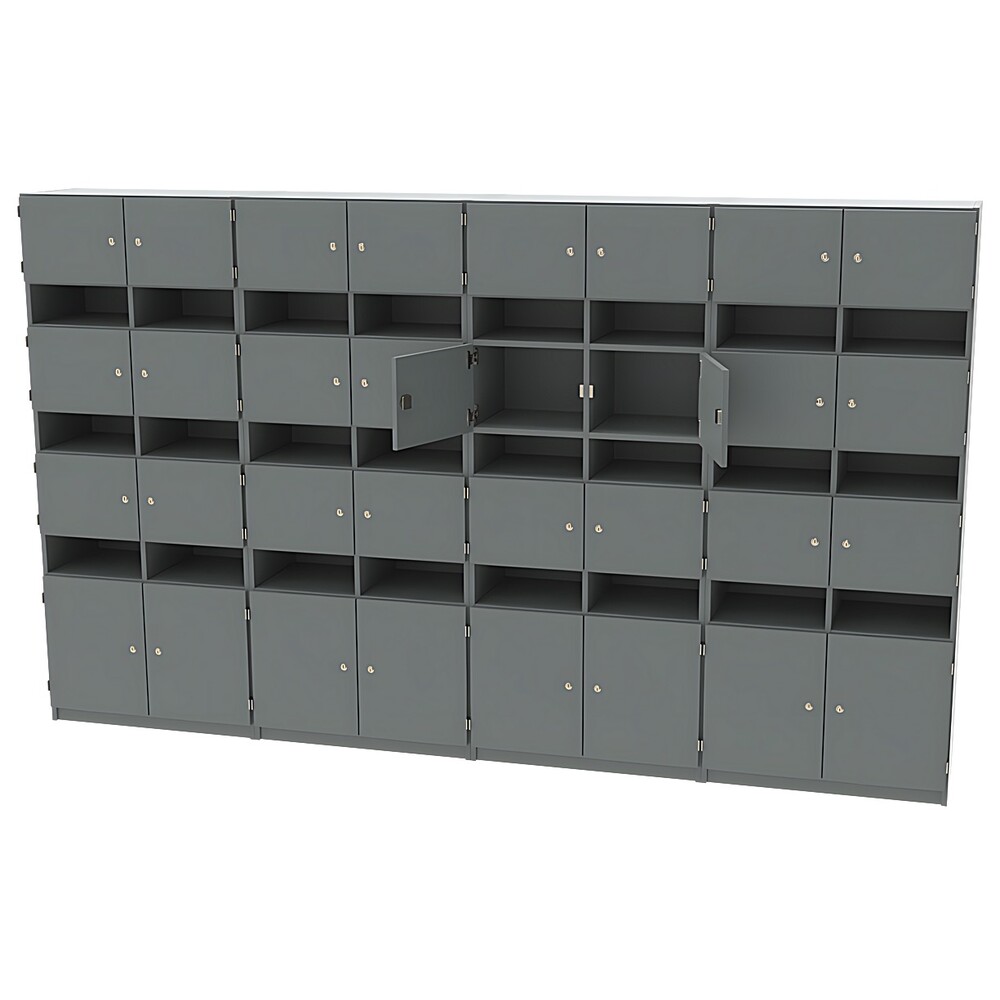 - Maximale Sicherheit: Verschiedenschließende Fächer mit frontbündigen Zylinderschlössern bieten jedem Lehrer einen privaten, geschützten Aufbewahrungsort.