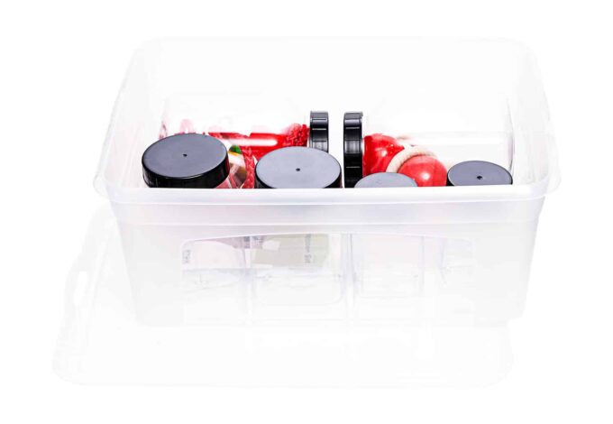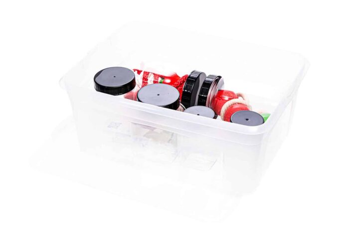 - Schraubdosen: 6 transparente Dosen aus Kunststoff in verschiedenen Größen