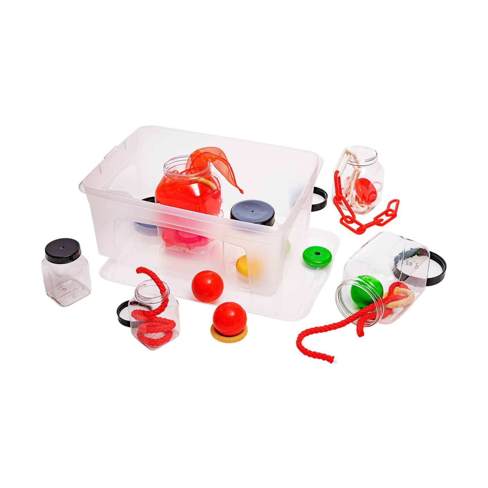 - Vielfältige Materialien entdecken: Mit enthaltenen Elementen wie einem weichen Chiffontuch, einer Gliederkette und einer klangvollen Holzkugel wird das spielerische Erkunden zu einem multisensorischen Erlebnis.