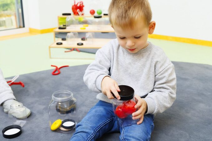 - Drehbewegungen perfektionieren: Das Auf- und Zuschrauben der Dosen regt die Hände der Kinder an, präzise Bewegungen auszuführen und die Handkraft zu trainieren.