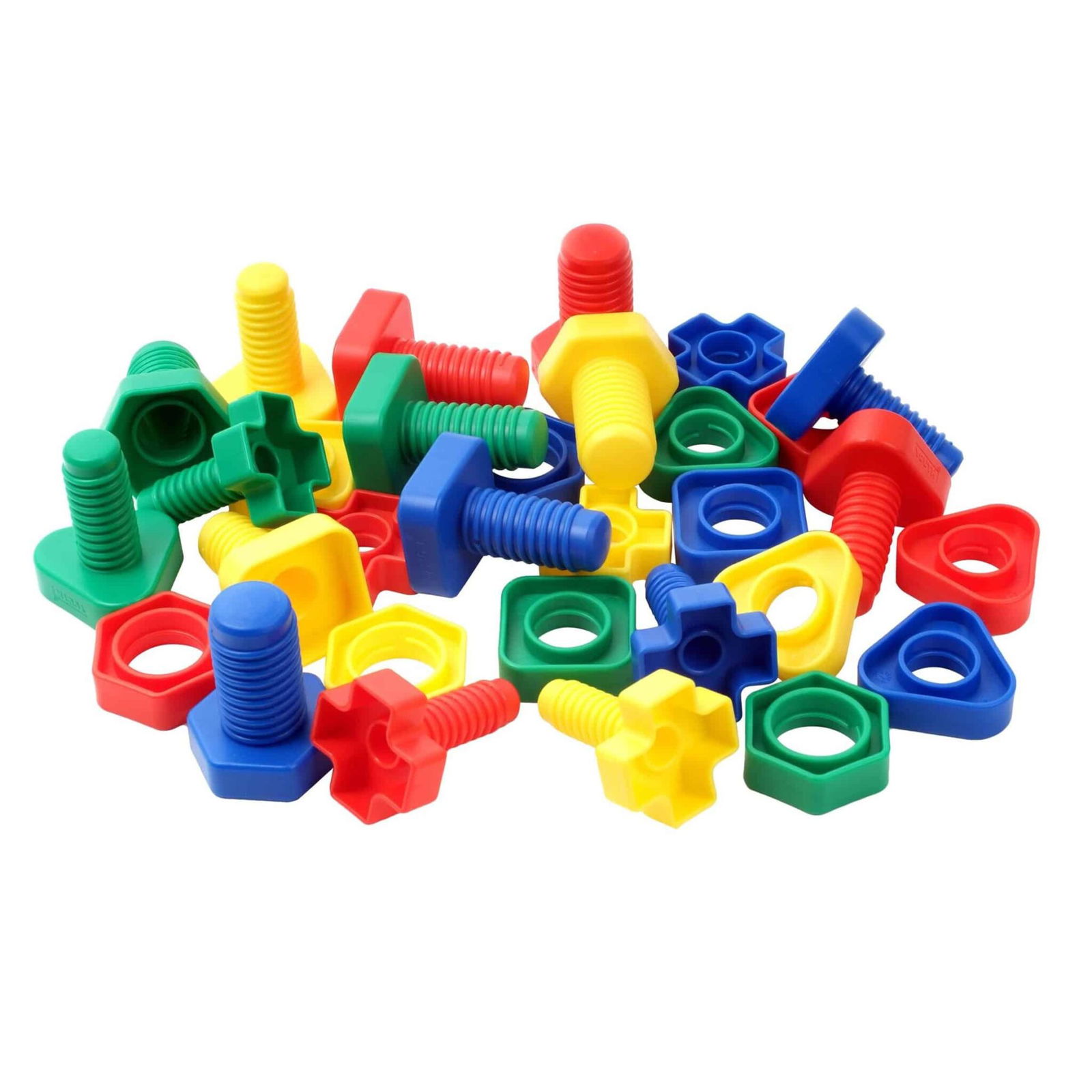 Nutzen Sie das farbenfrohe Set aus Schrauben und Muttern, um die Geduld und Feinmotorik handwerklich geschickter Kinder zu trainieren!