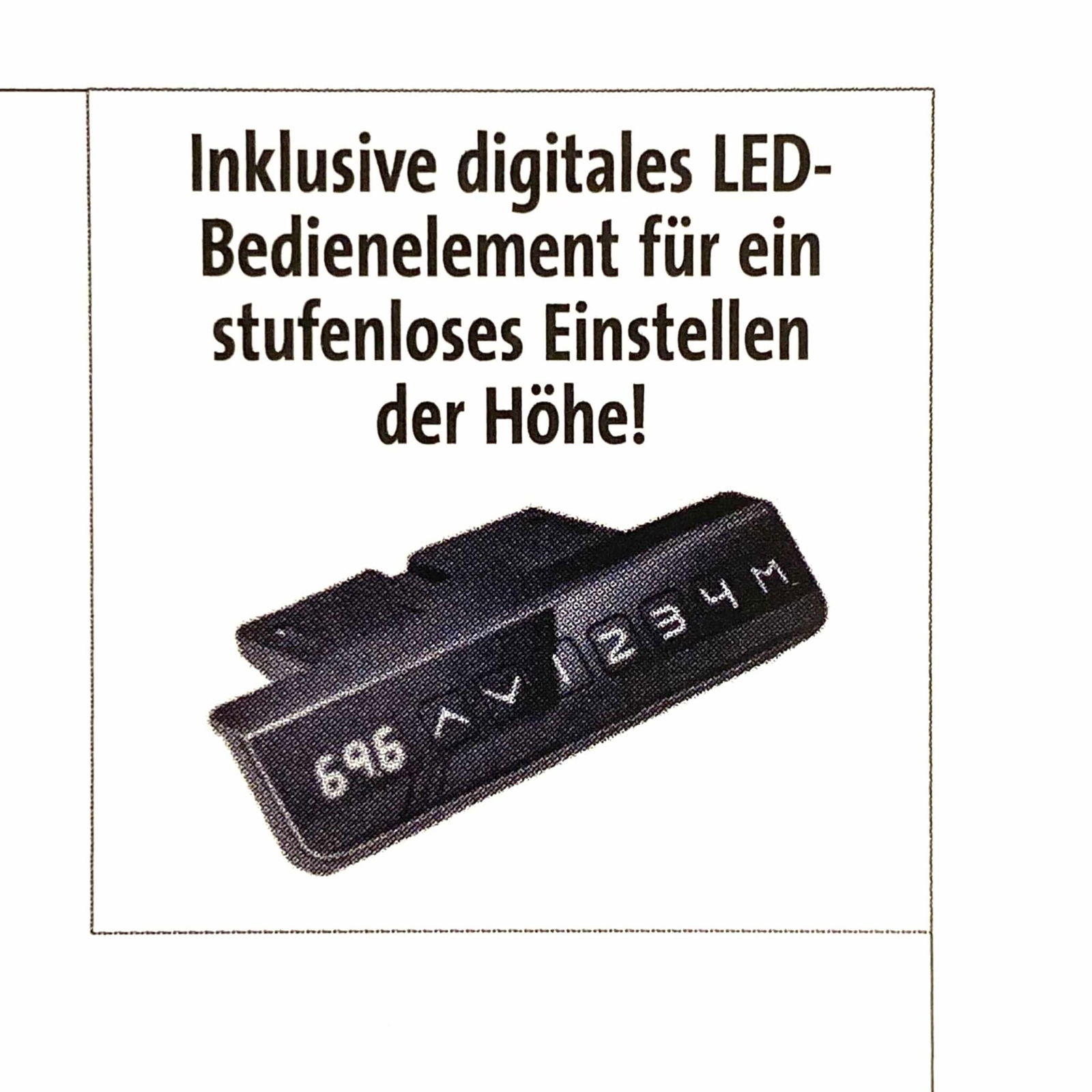 - Bedienelement mit Digitalanzeige und Memory-Funktion für vier vorgewählte Höhen.