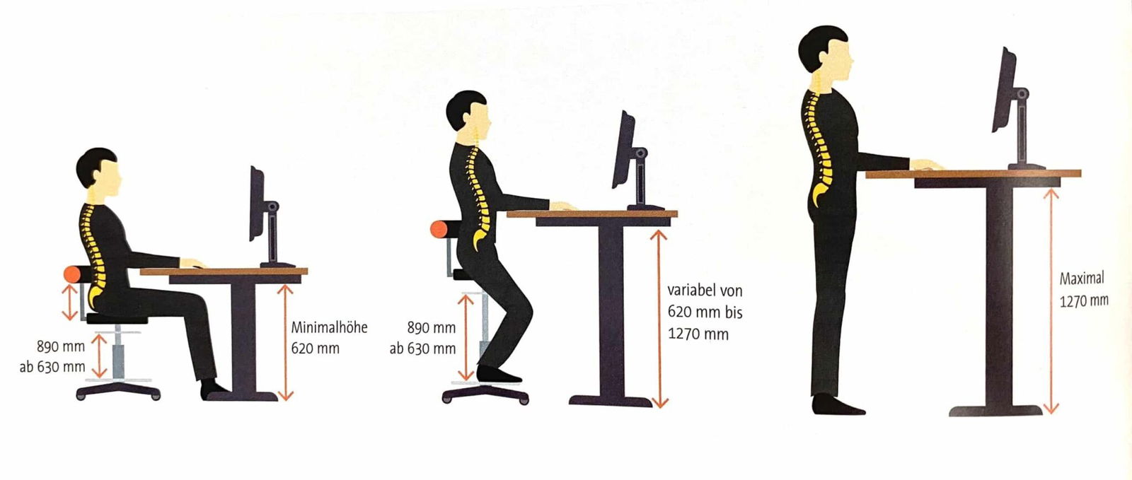 Der Mensch verbringt rund 80.000 Stunden (3.333 Tage oder 9,5 Jahre) seines Lebens in sitzender Tätigkeit. Infolge einer falschen Sitzposition und mangels Bewegung kommt es häufig zu den unterschiedlichsten Erkrankungen, vor allem des Muskel-Skelett-Systems. Eines der wichtigsten Konzepte zur Vermeidung von Fehlhaltungen ist die sogenannte „Steh-Sitzdynamik“, die sich im Büro optimal mit einer Kombination eines ergonomischen Stuhls wie den Sanus-Hochstuhl und eines höhenverstellbaren Schreibtischs verwirklichen lässt. Mit seiner variablen Höhe von 63-89 cm, einem stabilen, verstellbaren und arretierbaren Fußring, einem robusten, standfesten Fußkreuz sowie einer 360-Grad-Rundumlehne ermöglicht der Sanus-Hochstuhl die Aktivierung von Bindegeweben und verschiedenen Muskelgruppen, indem er die Bewegung und Entspannung im Sitzen ebenso anregt wie im Stehen.