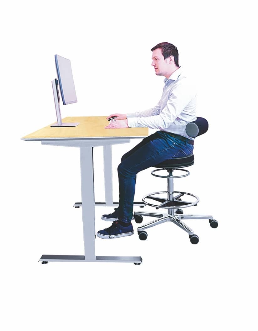 Der Konzentration und Motivation fördernde Hochstuhl eignet sich auch, wenn unterschiedlich große Mitarbeiter sich bisweilen einen Arbeitsplatz teilen müssen.