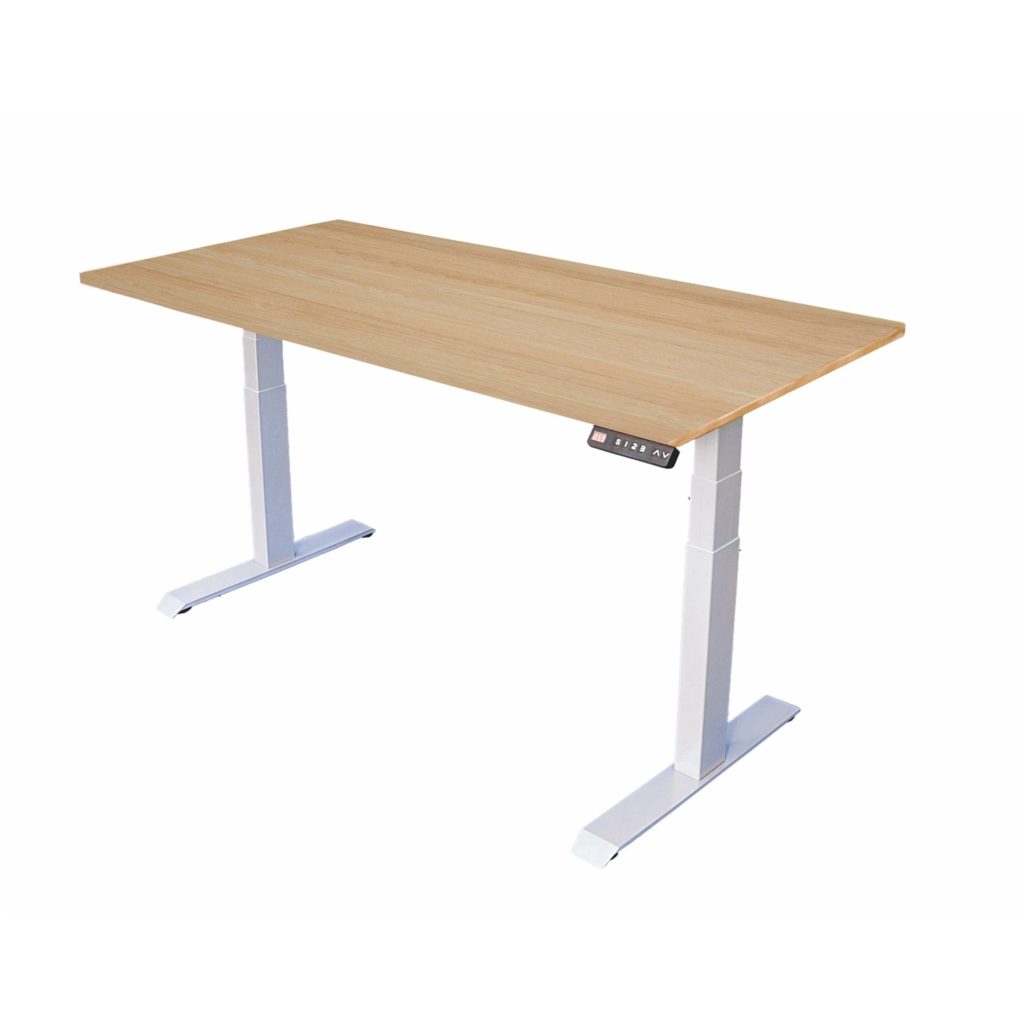 Schreibtisch elektrisch höhenverstellbar mit Tischplatte in weiß oder Eiche-hell, 160 x 80 cm