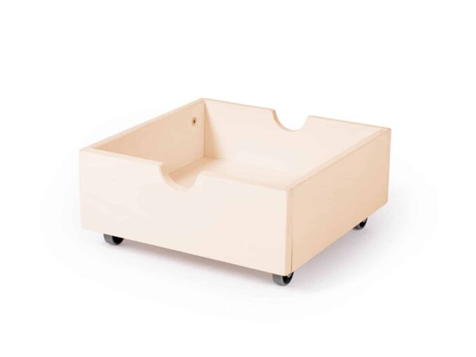 Praktische Schubladen auf stabilen Rädern, komplett aus transparent lackiertem Sperrholz. Passt perfekt für die Franek-Sitze: 6512389B, 6512390B und 6512391B.