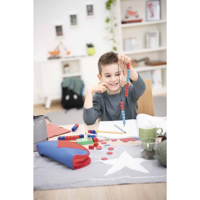 - 10 rote und 10 blaue Steckwürfel: Ideal zur Förderung von Mengenverständnis und zur praktischen Anwendung.