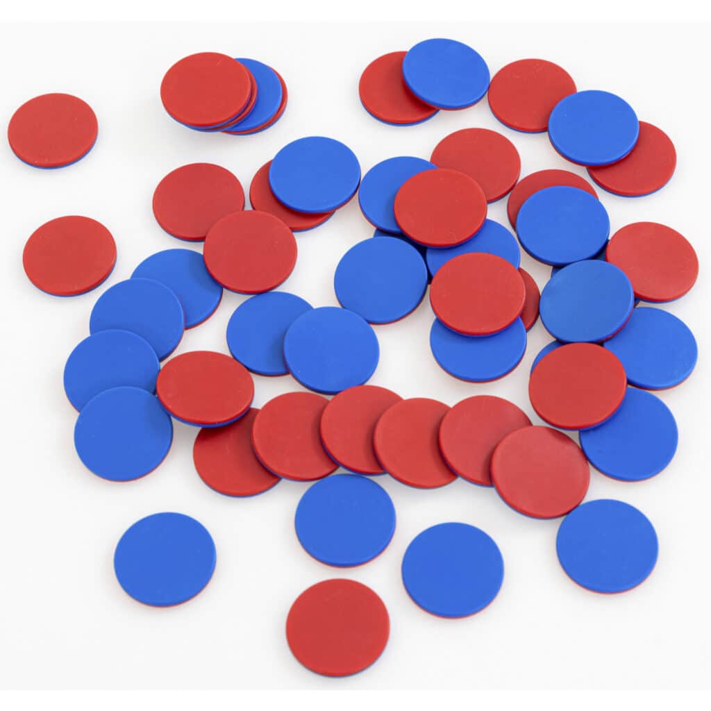Die Wendeplättchen überzeugen durch ihre einfach zu handhabende Nutzung und ihren hohen pädagogischen Wert. Mit einem Durchmesser von 2,5 cm haben sie die perfekte Größe, um von kleinen Händen gehalten und bewegt zu werden. Die Plättchen sind in zwei Farben gestaltet: eine Seite ist rot und die andere blau. Dies ermöglicht den Schülerinnen und Schülern, verschiedene Rechenoperationen visuell darzustellen und besser zu verstehen.