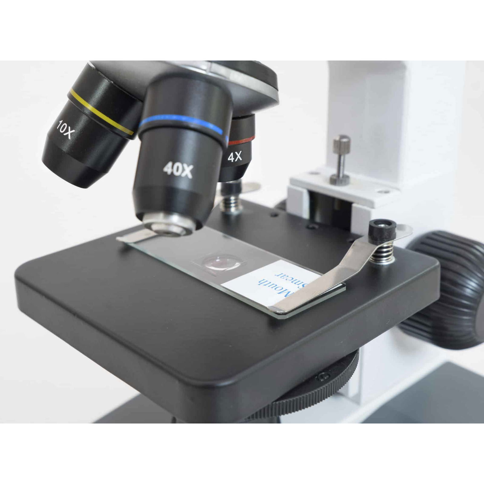 - Objektiv: Achromatische Objektive: 4x, 10x, 40x (mit Präparat-Schutz)