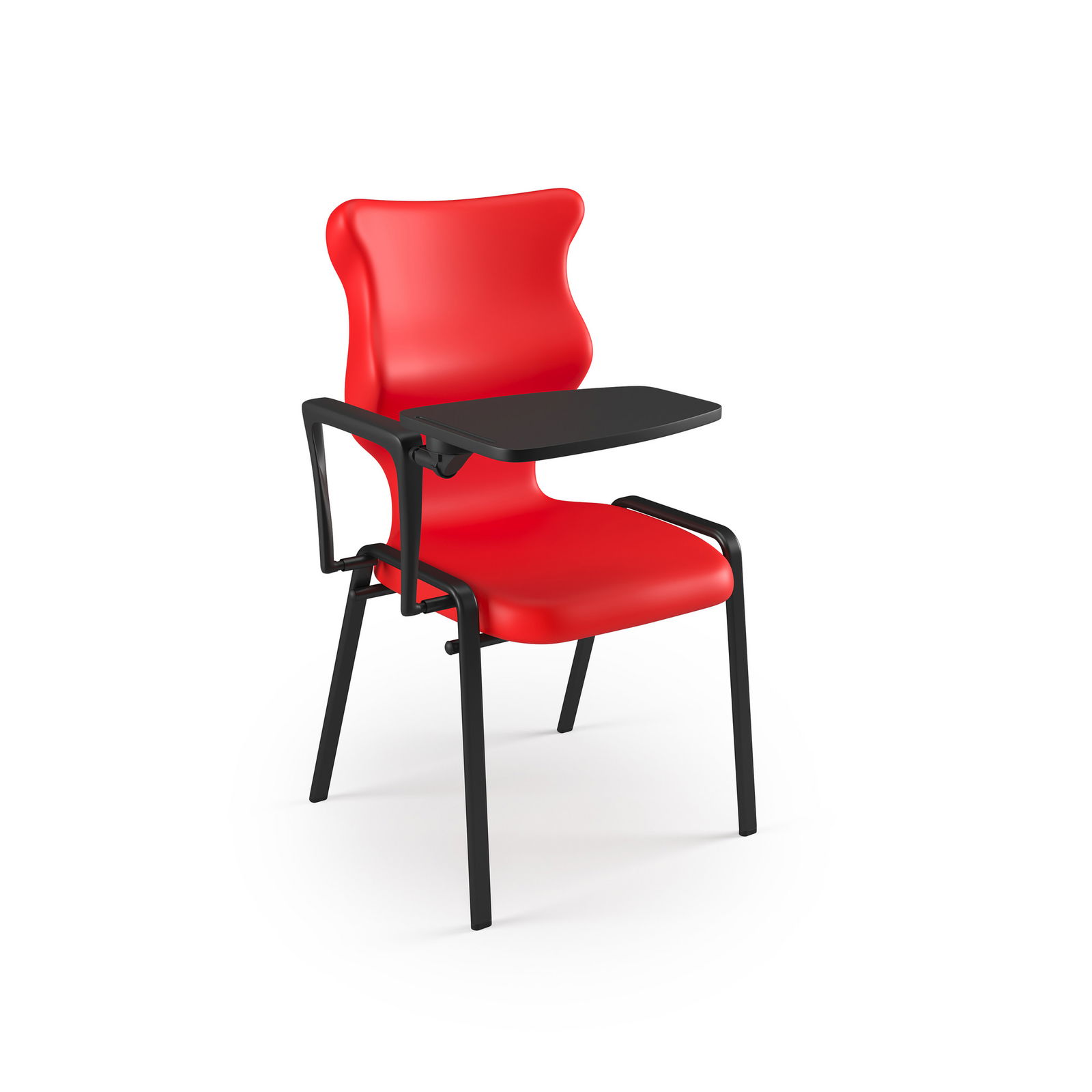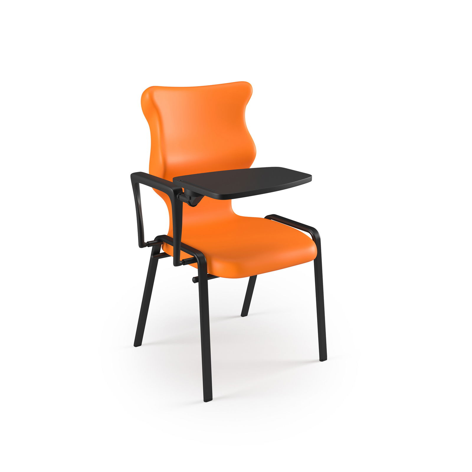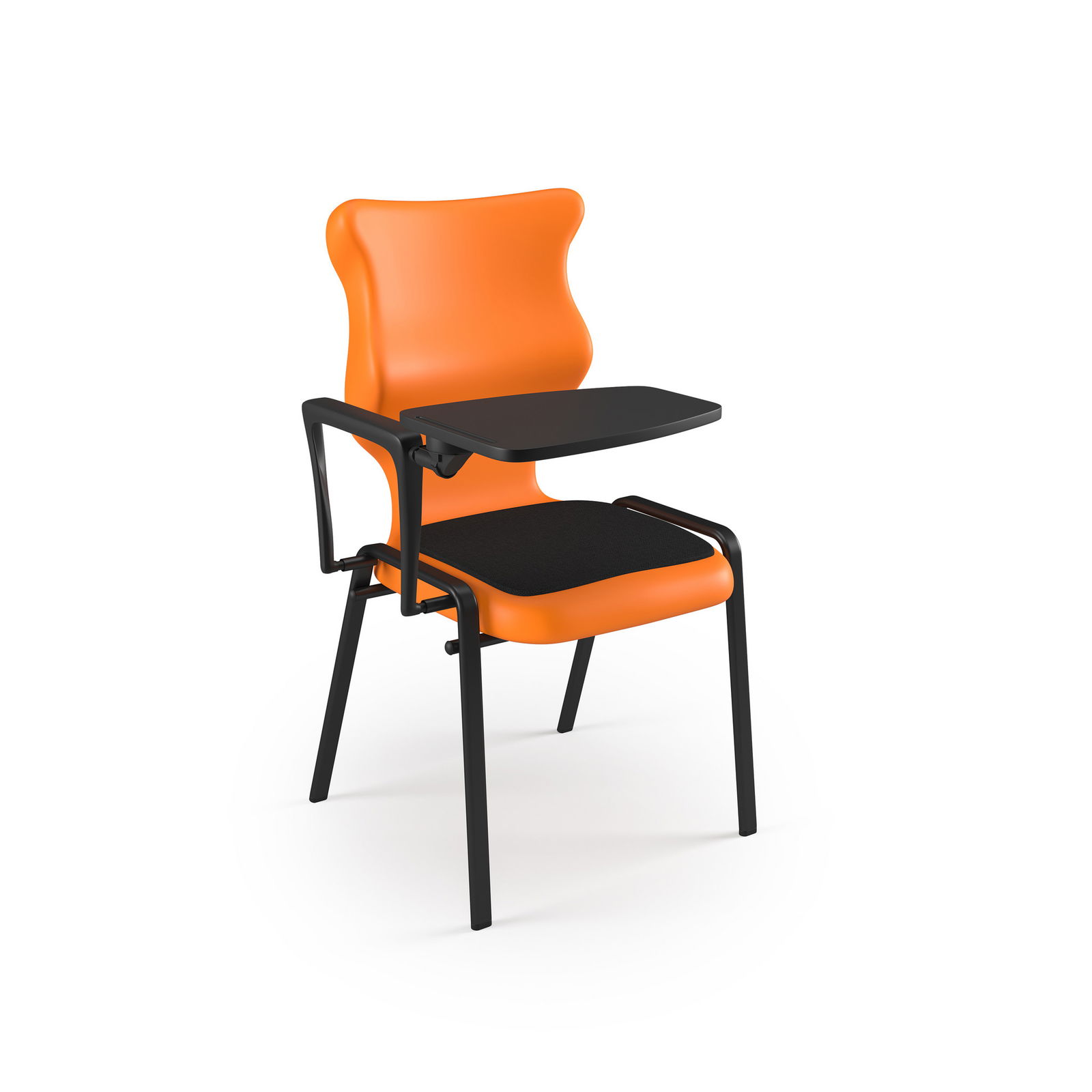 Speziell für Schülerinnen und Schüler ab ca. 10 Jahren (Größe 6) entwickelt, überzeugt der STUDENT PLUS durch sein durchdachtes Design. Das schwarze Hörsaalgestell wirkt nicht nur modern, sondern sorgt dank rutschfester Bodengleiter für einen sicheren Stand. Der integrierte Klapptisch lässt sich bei Bedarf einfach nutzen und ermöglicht bequemes Arbeiten, Schreiben oder Tablet-Nutzung direkt am Platz. Ein Griff an der Rückenlehne erleichtert zudem das Umstellen der Stühle, sodass Raumkonzepte blitzschnell angepasst werden können.