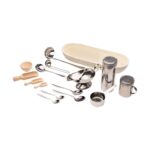 Das Set ist aus robustem Edelstahl und hochwertigem Holz gefertigt, was sowohl die Langlebigkeit der Produkte als auch die Sicherheit während des Spiels gewährleistet. Diese Materialien sind pflegeleicht und eignen sich hervorragend für den regelmäßigen Einsatz in Kitas, Schulen oder im häuslichen Umfeld.