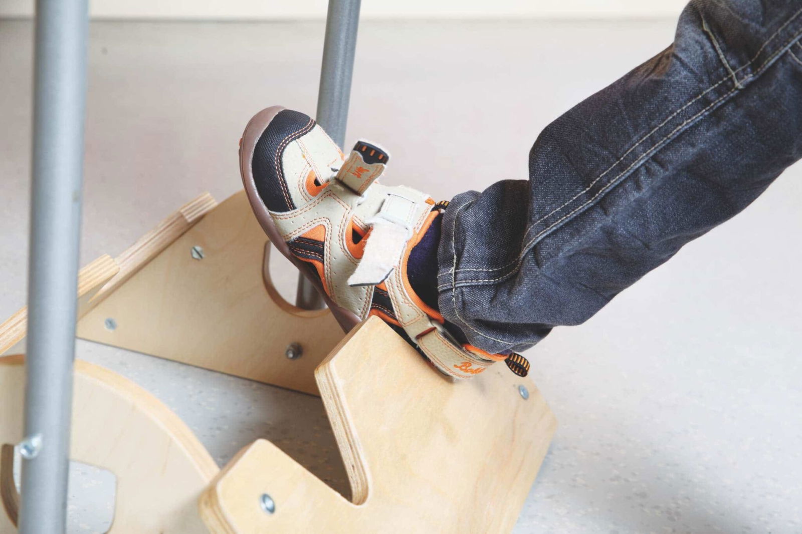 Der Schuhauszieher ist ein perfektes Werkzeug nach dem Montessori-Prinzip „Hilf mir, es selbst zu tun“. Kinder müssen nicht mehr auf die Hilfe von Erwachsenen warten, sondern können aktiv werden. Sie lernen, ihre Kraft und Koordination gezielt einzusetzen, um auch feste Schuhe und Stiefel selbstständig auszuziehen. Dieses Erfolgserlebnis stärkt das Selbstvertrauen und den Stolz auf die eigenen Fähigkeiten enorm. - Sicherer Stand durch stabilen Haltegriff