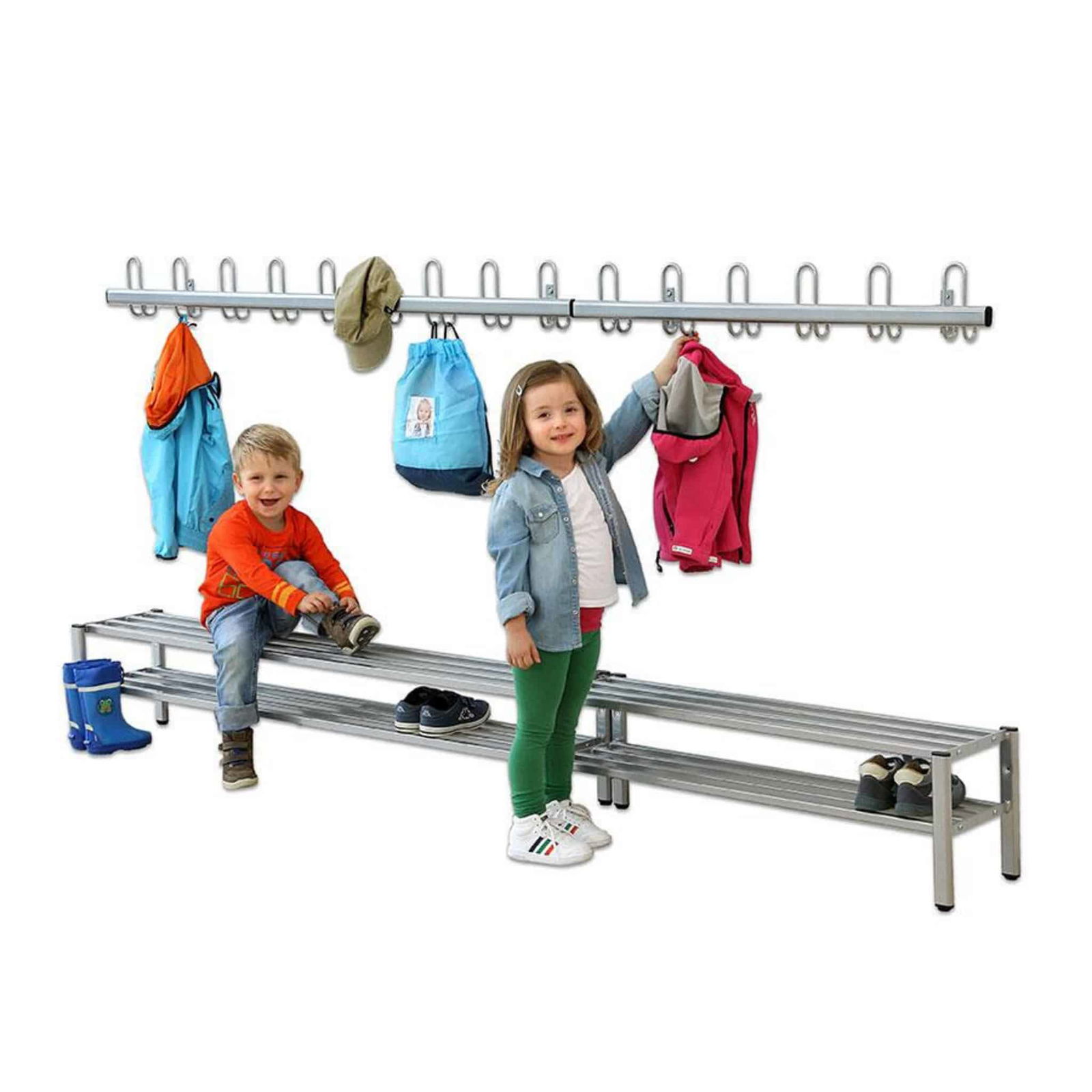 Die clevere Kombination aus Schuhablage und Sitzfläche macht das Regal zu einem unverzichtbaren Möbelstück in Sporthallen, Schulen oder Kindergärten. Kinder können bequem sitzen, um ihre Schuhe an- oder auszuziehen, während das Schuhfach unter der Sitzfläche für Sicherheit und Ordnung sorgt. Stolperfallen durch herumliegende Schuhe gehören damit der Vergangenheit an. Dank seiner langlebigen Materialien und durchdachten Konstruktion ist das Schuhregal ein perfekter Begleiter für alle, die Wert auf Funktionalität und ein aufgeräumtes Erscheinungsbild legen.