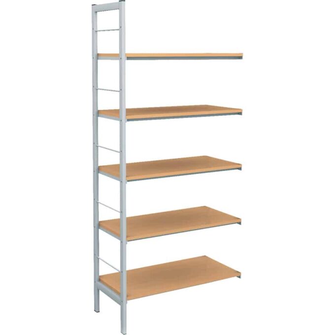 Optimieren Sie Ihre Lagerlösungen mit unserem Schwerlastregal Zusatzmodul. Dieses Fachbodenregal aus robustem Metall ist mit fünf Böden aus laminierter Spanplatte in eleganter Buche-Optik ausgestattet und bietet Ihnen maximale Flexibilität durch die Erweiterung Ihrer bestehenden Regalsysteme.