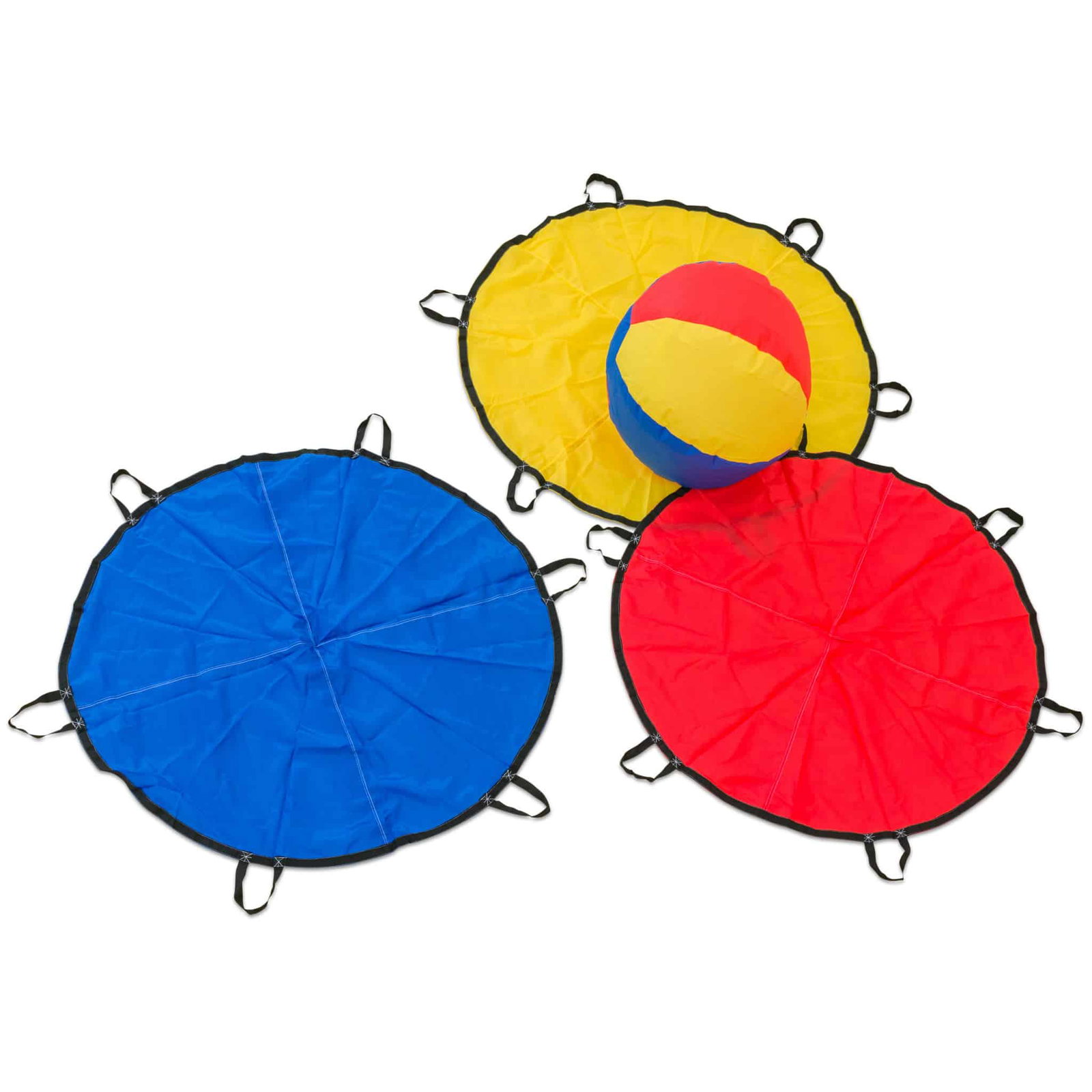Die strapazierfähigen Schwungtücher sind mit 6 Halteschlaufen ausgestattet, sodass jede Gruppe eine volle Kontrolle über den Ball hat, während sie sie sicher festhalten. Das Spiel eignet sich hervorragend für Kinder im Alter von 4 bis 15 Jahren, und dank seiner einfache Handhabung kann es sowohl drinnen als auch draußen gespielt werden.