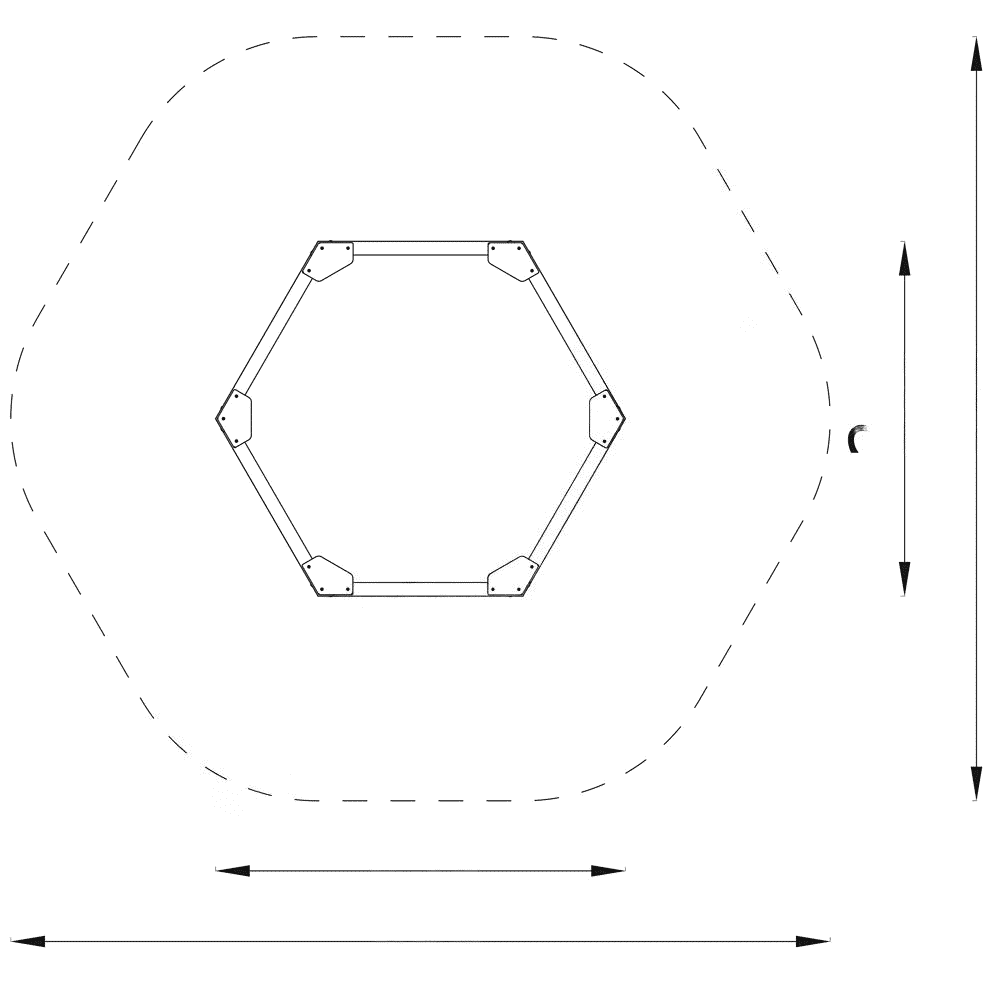 - Sicherheitsbereich: 560 x 600 cm (Fläche: 26,5 m²)